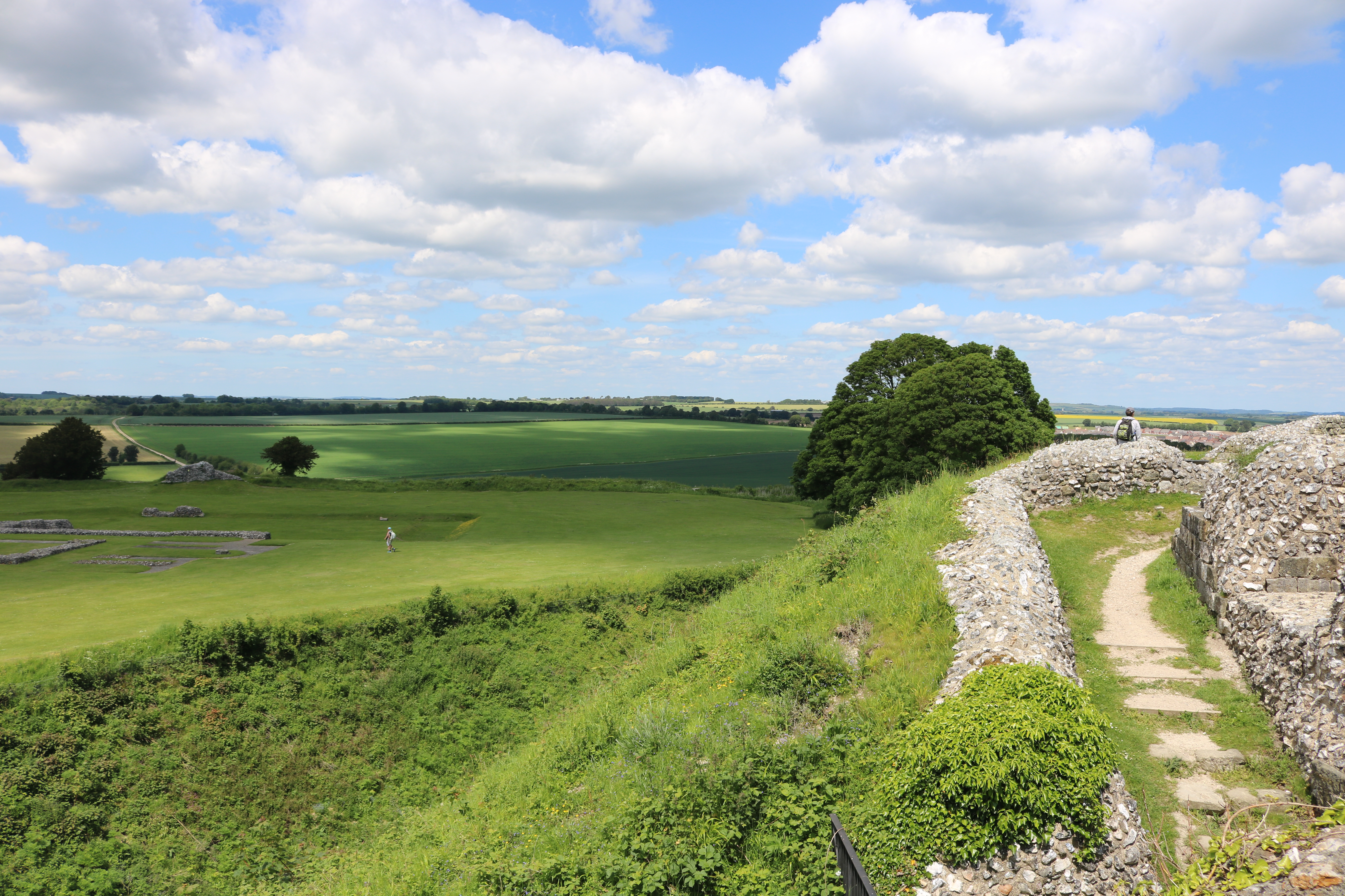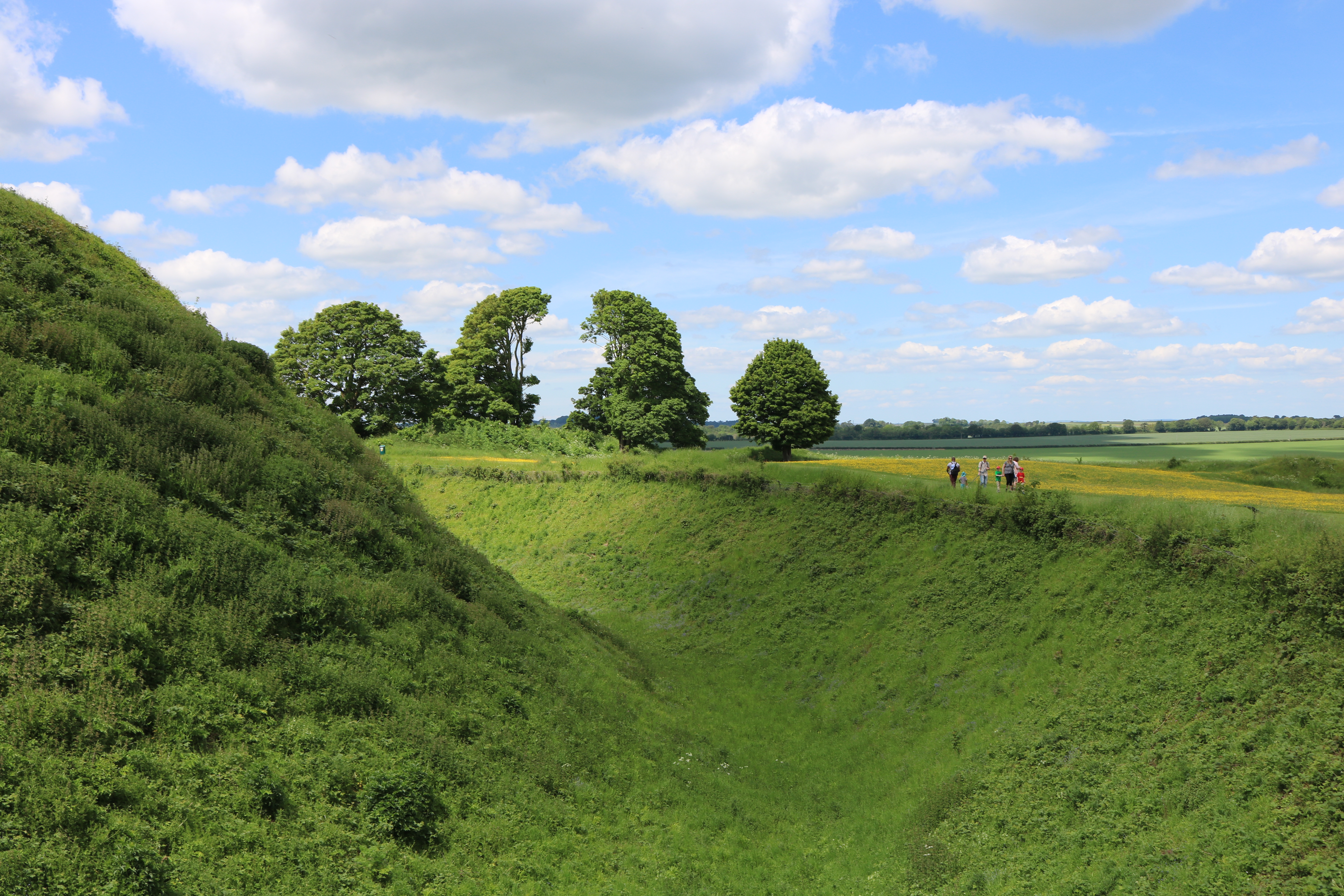 À côté de Salisbury se trouve Old Sarum, un site qui date lui-aussi de la préhistoire. Non seulement on y trouve une place forte de l’âge de fer, mais aussi un château normand, et les ruines d’une cathédrale. Depuis cette grande colline, il y a aussi des vues imprenables sur Salisbury. Super pour un pique-nique. Par beau temps, on peut aussi y admirer les skydivers qui sautent juste au-dessus du château.